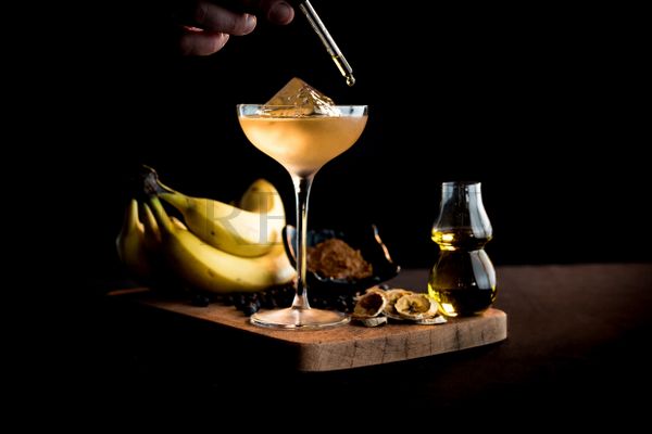 Moving in a more culinary direction, the banana-infused Peel & See is inspired by Andy Warhol’s iconic piece for The Velvet Underground. The unlikely combination of banana, miso and olive oil are integrated into the gin base through a multi-step process of sous vide, dehydration and fat-washing, then combined with quinine aperitif and served with an additional dash of olive oil for garnish.