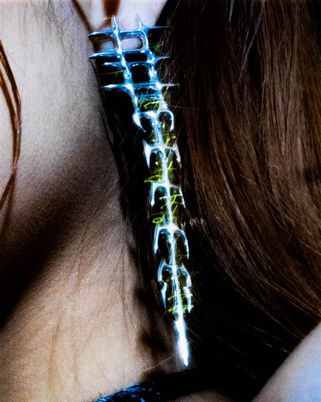 “Chrysalis” jewellery range incorporates organic, natural shapes with peculiar contours and silhouettes to illustrate our contemporary society and the human condition. The collection inspired the artist to communicate the violence against, and resilience of, cis and trans women — exemplified by profound rebirth symbolism and the edges of each metallic piece.